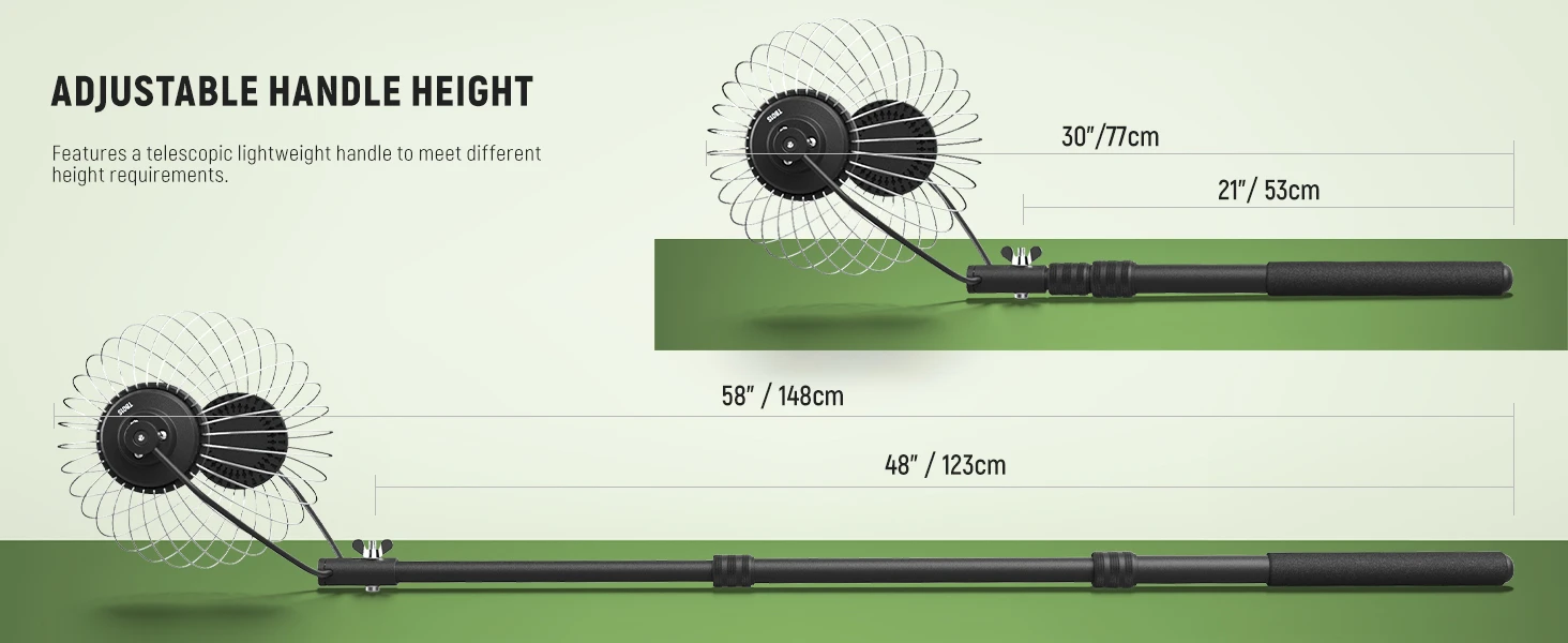 دسته تلسکوپی این محصول امکان تنظیم ارتفاع بین ۷۷ تا ۱۴۸ سانتی متر را فراهم می کند تا برای افراد با قد و شرایط مختلف مناسب باشد. انتهای دسته با فوم نرم و ضدلغزش پوشیده شده تا گرفتن آن راحت و ایمن باشد. این ویژگی باعث صرفه جویی در زمان شده و تمرکز شما را کاملاً بر روی تمرین حفظ می کند.