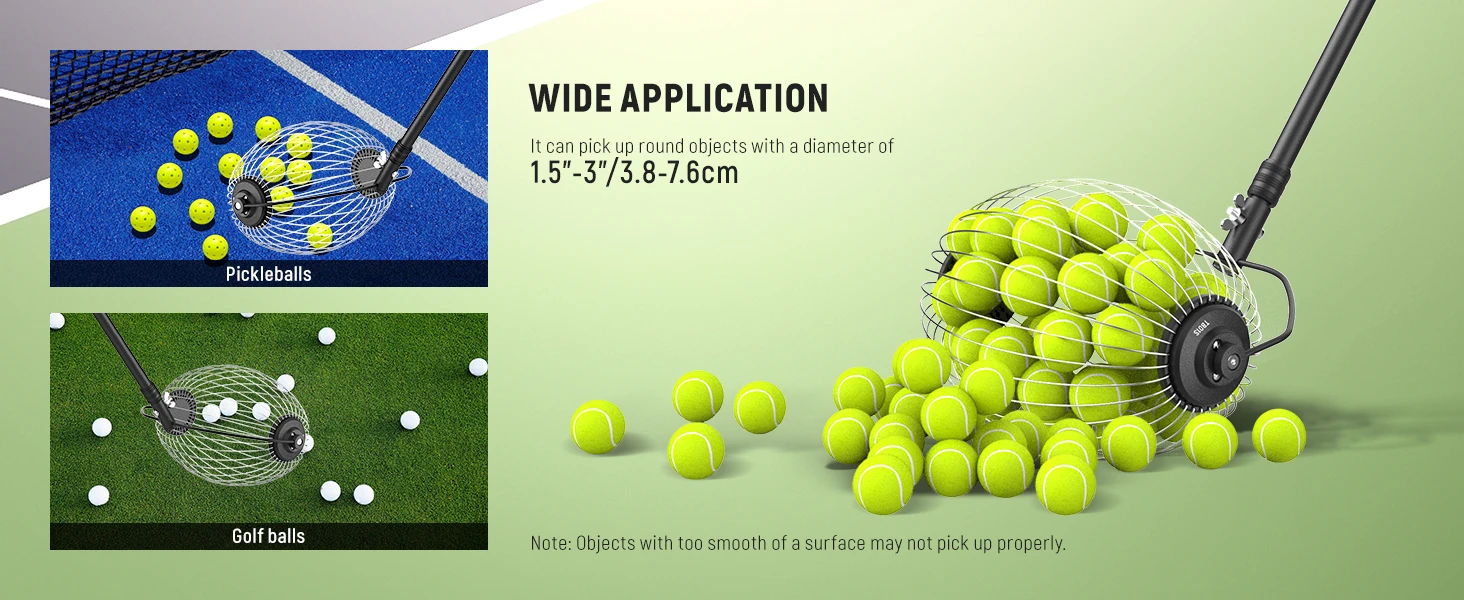 - سایز توپ قابل جمع آوری: ۱.۵ تا ۳ اینچ (تنیس، پیکلبال، گلف و حتی آجیل)